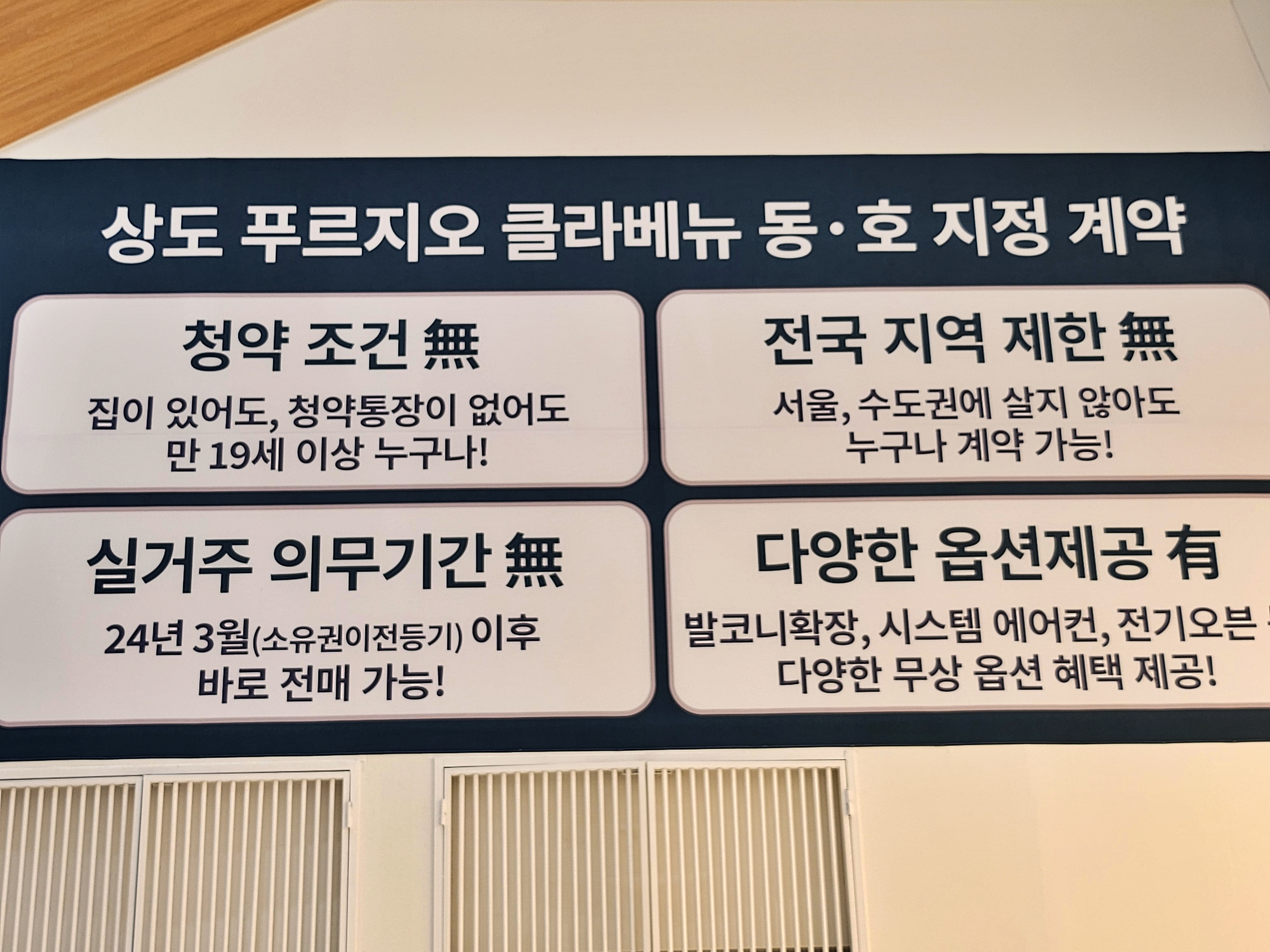 상도동 푸르지오 클라베뉴 아파트는 거주의무가 없어 수익성이 좋고, 조합이나 임대 물량이 없어 선호하는 동과 층을 선택 할 수 있습니다. 84 타입은 인근의 다른 후불제 단지 보다 이자 부담이 적고, 발코니 공사비도 포함되어 있어 비용을 절약할 수 있습니다.