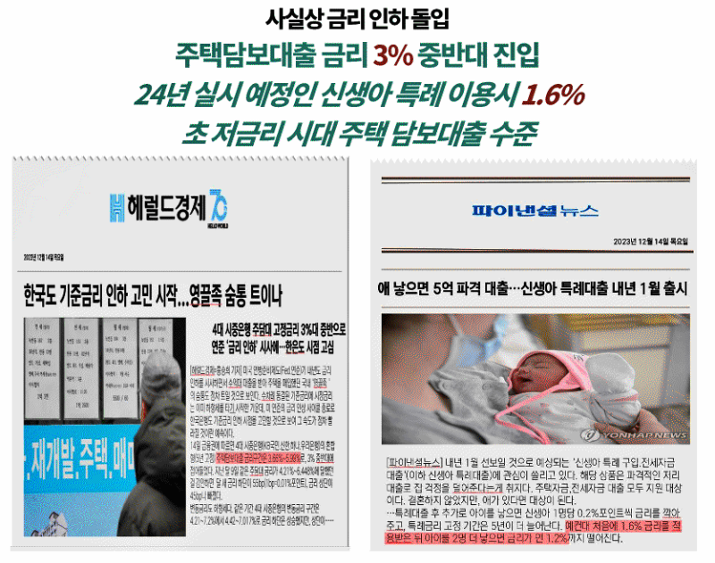 금리 인하로 주택 담보대출과 신생아 특례 이용시 1.6%로 저렴하게 이용가능