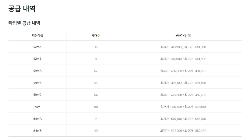 59㎡ 최저가 425,800,000 ~ 최고가 494,200,000원