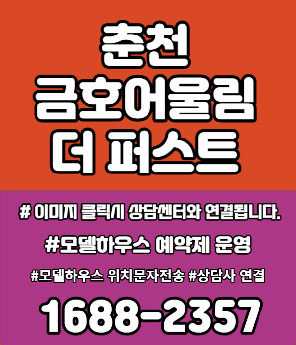 춘천 금호어울림 더 퍼스트 모델하우스는 후평만천 아파트로서 선착순 분양 접수를 받는 중입니다.아울러 더욱 꼼꼼하게 동, 호수 확인을 진해하고 고객 개개인에게 더 상세한 상담을 제공해 드리기 위하여 사전 방문 예약제로 운영이 됨에 숙지해 주시기 바랍니다. 더 궁금한 사항이 있다면 위 대표 번호로 연락하시면 친절히 상담해 드리겠습니다.