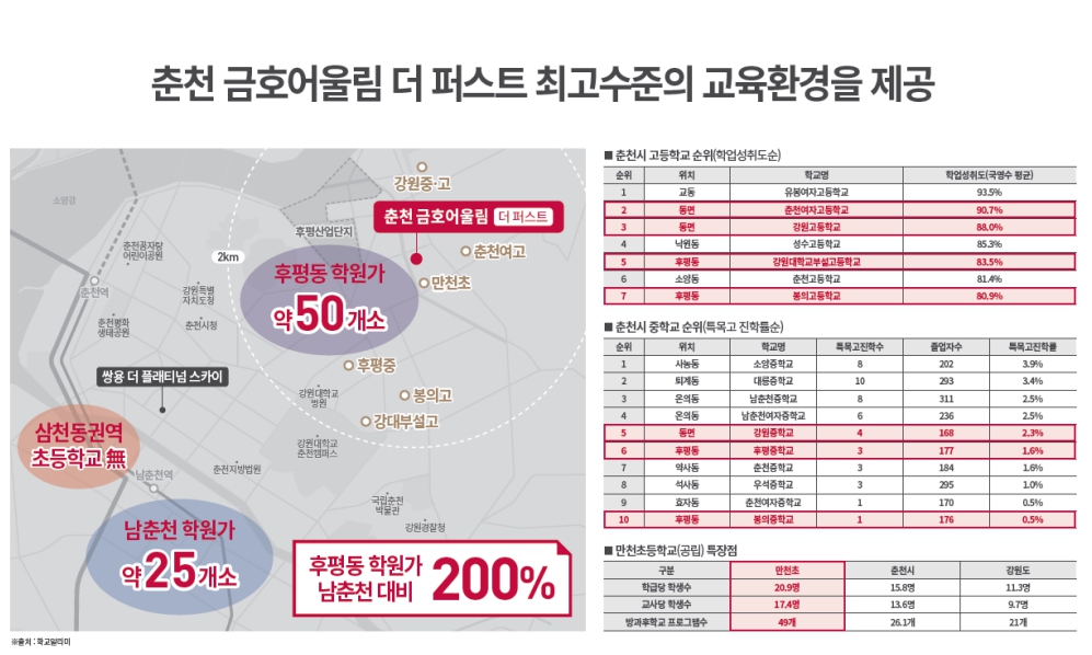 후평만천 아파트인 춘천 금호어울림 더퍼스트를 찾아오시는 분들에게 또 하나 매력적으로 다가오는 것은 바로 교육 환경입니다. 선착순 분양 접수가 이루어지는 이유도 이것이라 할 수 있습니다.