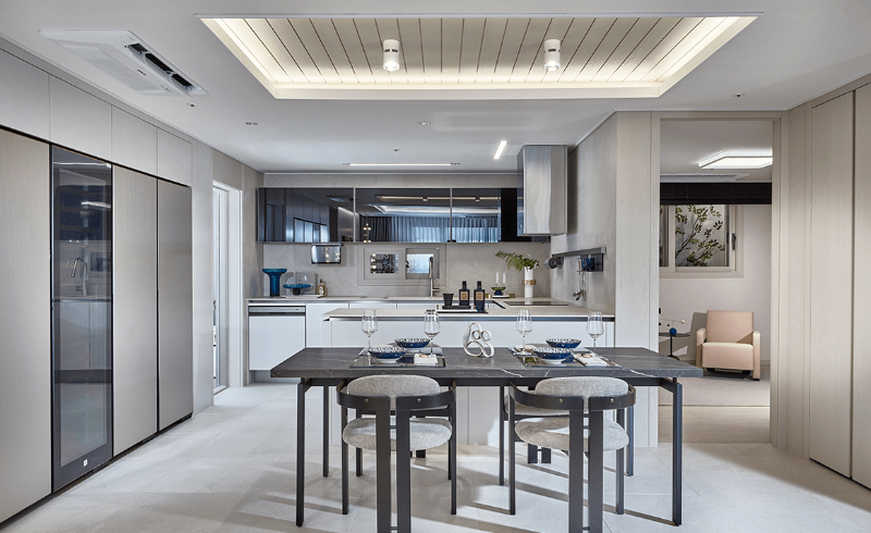 6.2광폭 거실과 4.4 와이드 주방 등 서비스 면적의 극대화로 공간 효율성이 증대 되었습니다. 내부 시스템으로는 스마트홈 앱, 주차 관제 시스템, 비대면 무인 택배, 엘리베이터 호출 시스템 등을 사용할 수 있습니다. 어디서나 편리하고 쉽게 제어할 수 있는 스마트홈 시스템을 적용하여 더욱 뛰어난 삶의 워라벨을 실현할 수 있습니다.