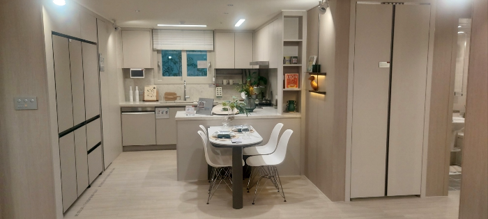 좋은 채광은 샐내를 환하게 만들고 난방비 절감에도 도움이 됩니다. 거실과 주방이 연결된 구조는 공간을 더 넓게 보이게 하며, 생활 동선을 효율적으로 만듭니다.