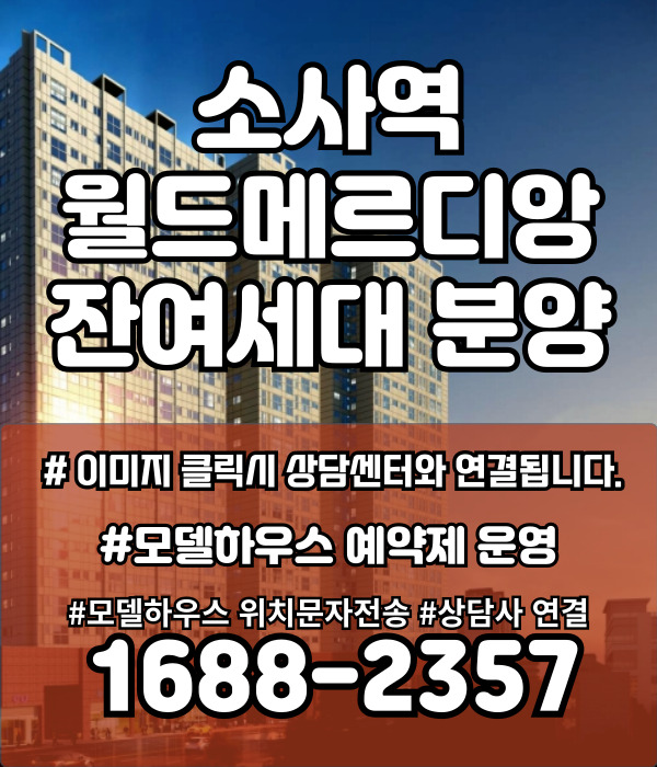 부천시의 중심에 자리한 소사역 월드메르디앙 아파트는 즉시입주가 가능합니다. 현재 선착순으로 잔여세대를 계약중에 있습니다. 오늘은 소사역 월드메르디앙 아파트에 대해 소개해 드리고 관심이 있으신 분들은 상담 번호로 연락을 하셔서 상담을 받아 보시길 바랍니다.