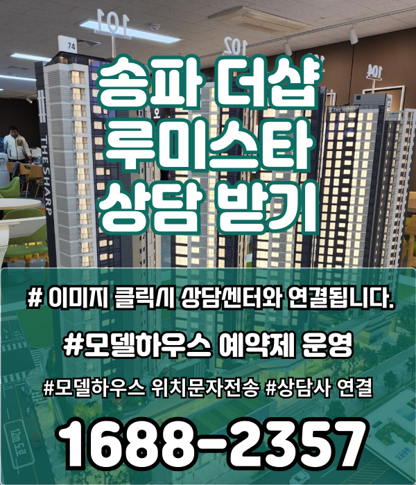 송파구 지역에서 거주를 희망하시는 분들께는 상담번호로 연락하셔서 자세한 상담을 받아 보시길 권해드립니다. 더샵 송파루미스타 아파트는 청약통장, 전매제한, 실거주의무가 없어 계약 조건이 까다롭지 않아 가볍게 다가갈 수 있는 장점이 있습니다.