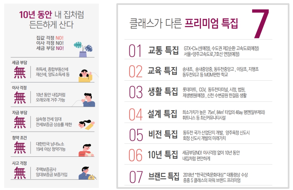동두천 중흥S클래스 헤라시티는 민간임대 아파트로서의 장점도 눈에 뛰어 지역내에서 관심이 많습니다. 10년간 이사 걱정없이 안정적인 거주를 할수 있고 세금 부담도 없어 경제적으로도 좋습니다.