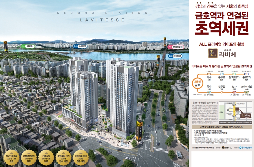서울 성동구 금호동 4가에 위치한 금호역 라비체는 현대적인 주거 공간과 뛰어난 입지를 자랑하는 아파트 단지입니다. 이 단지는 지하 6층에서 지상 29층까지 4개 동으로 구성되어 있으며, 총 581 가구의 세대수가 있어 다양한 주거 옵션을 제공합니다. 오늘은 금호역 라비체 분양가를 알아보고 모델하우스 방문 하여 견본 주택을 관람하시길 바랍니다.