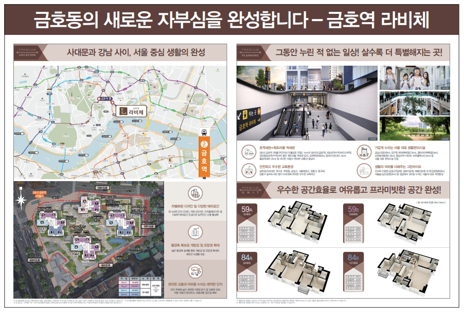 금호역 라비체는 입주민들에게 높은 생활 만족도를 제공하는 최적의 주거 단지입니다. 편리한 교통 접근성, 우수한 교육 환경, 풍부한 생활 편의시설, 그리고 아름다운 자연환경을 모두 갖춘 금호역 라비체는 서울에서 새로운 주거 중심지로 자리매김할 것입니다. 이러한 매력적인 요소들은 금호역 라비체를 선택하는 많은 이들에게 큰 만족감을 제공할 것입니다. 금호역 라비체는 현대인들의 다양한 니즈를 충족시키며, 서울의 중심에서 편리하고 쾌적한 생활을 가능하게 합니다.