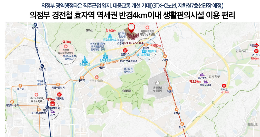 의정부 경전철 효자역 역세권의 이점을 살리며, 향후 의정부에서 새로운 랜드마크로 자리 잡을 가능성이 큽니다.