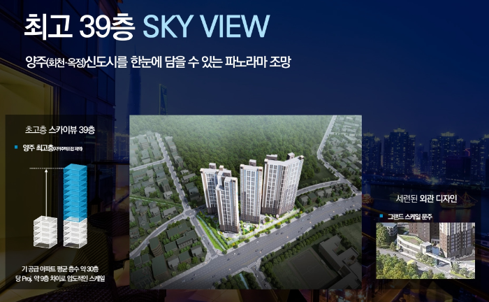 최고 39층에 달하는 스카이뷰를 통해 양주 지역의 파노라마 전경을 즐길 수 있는 것은 덕정역 한라에피트의 또 다른 매력입니다. 기 공급된 아파트들보다 9층 이상 높은 구조로, 양주 지역 내 최고층의 압도적인 스케일을 자랑합니다.