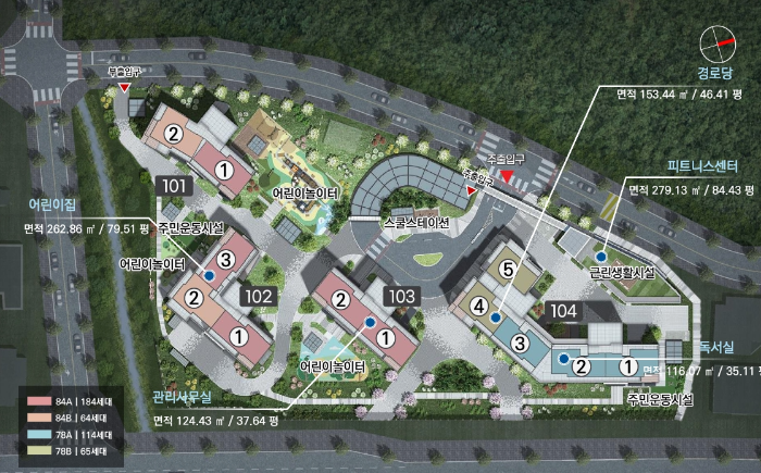 78㎡ A타입은 총 114세대가 있으며, 전용면적 78.32㎡에 공용면적과 기타 공용 공간을 포함해 넉넉한 생활공간을 제공합니다. 동남향으로 설계된 구조와 넓은 주방, 복도 팬트리, 워크인 드레스룸이 주요 특징입니다.