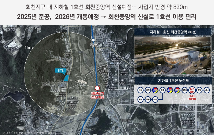 회천중앙역이 약 820m 거리에 위치하며, 2026년 개통 예정으로 1호선 접근성도 향상될 것입니다. 이와 더불어 GTX-C 덕정역의 개통으로 서울 및 수도권 접근성이 뛰어나며, 자가용 및 대중교통 모두 이용이 편리합니다.