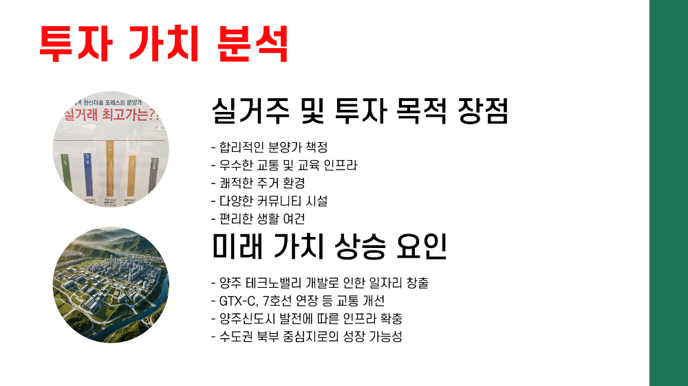 | 양주신도시 개발 | 생활 인프라 확충 및 주거환경 개선 |