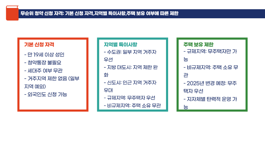 무순위 청약은 추첨제로 진행되지만, 당첨 확률을 높일 수 있는 몇 가지 전략이 있어요.