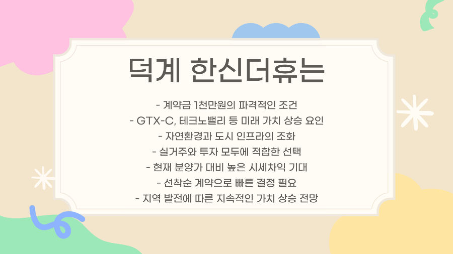 덕계역 한신더휴는 양주 회천 신도시 개발의 중심에 위치한 만큼, 향후 가치 상승이 기대되는 곳이에요. 불과 3년 전만 해도 덕계역 인근 신축 아파트들이 3억 후반~4억 초반대 분양이었는데, 현재는 5억 후반에서 6억 초반까지 실거래가 되고 있답니다.