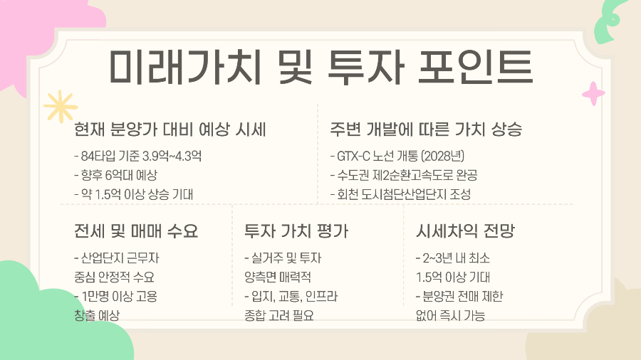 - 핵심 호재: GTX-C, 수도권 제2순환도로, 회천 도시첨단산단