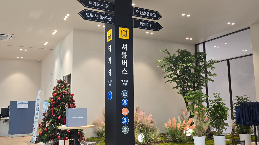 A7. 덕계역 ↔ 아파트 간 전용 셔틀버스가 운행되며 약 5분 거리예요.