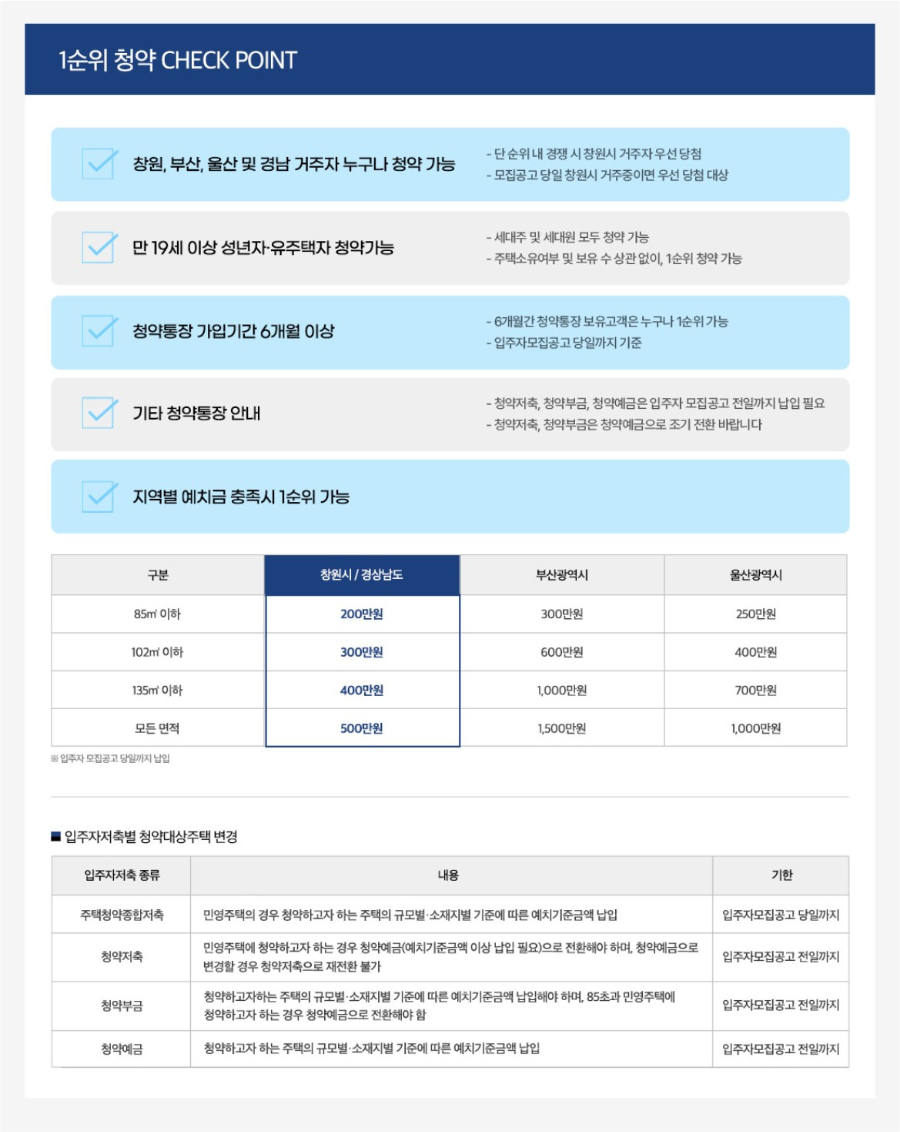 창원시 거주자는 물론, 경남 전역과 부산·울산 거주자도 청약 가능해요. 나이 제한은 만 19세 이상이고, 미성년 세대주도 자녀 양육 목적이면 예외예요.