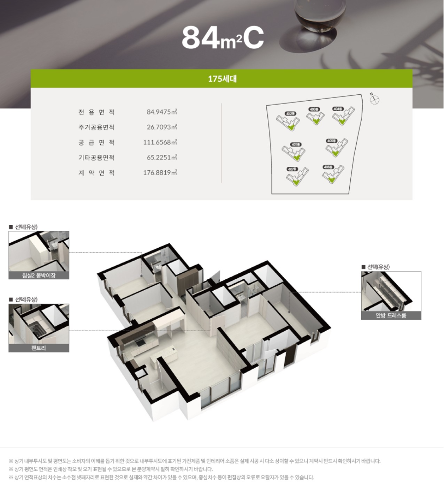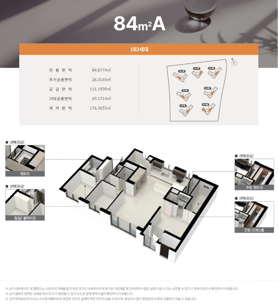 84A, 84B, 84C 타입 모두 구조나 세대수가 달라서 개인 취향이나 향을 고려해서 선택하면 좋아요.