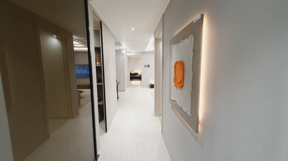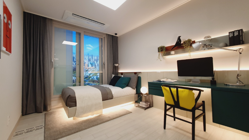 이곳의 특징 중 하나는 선택의 여지가 아니라, 기본으로 제공되는 고급 사양이에요. 발코니 확장은 기본 제공되고, 시스템에어컨, 빌트인 냉장고와 김치냉장고, 에어드레서까지 제공돼요. 여기에 새집증후군을 예방하는 무기질도료와 음식물처리기까지 준비되어 있어 ‘입주 즉시 완성형’ 생활이 가능하답니다.