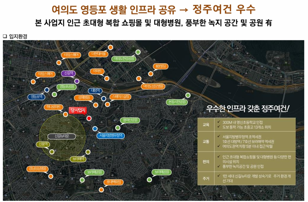 신길뉴타운의 핵심 자리에 위치한 만큼 도시 개발의 가장 앞자리를 차지하고 있으며, 입지에 따른 시세 차익도 기대해볼 수 있어요. 투자와 실거주의 기준을 모두 만족시키는 희소성 높은 주거지가 될 것으로 평가받고 있어요.