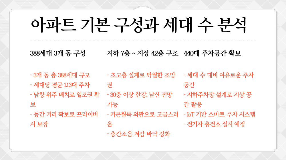 제가 생각했을 때 이 아파트는 부동산 투자자 입장에서도 매우 안정적인 선택지예요. 하락장에도 버티는 내재가치를 가지고 있고, 상승장에서는 프리미엄이 더해져 수익을 극대화할 수 있기 때문이에요.