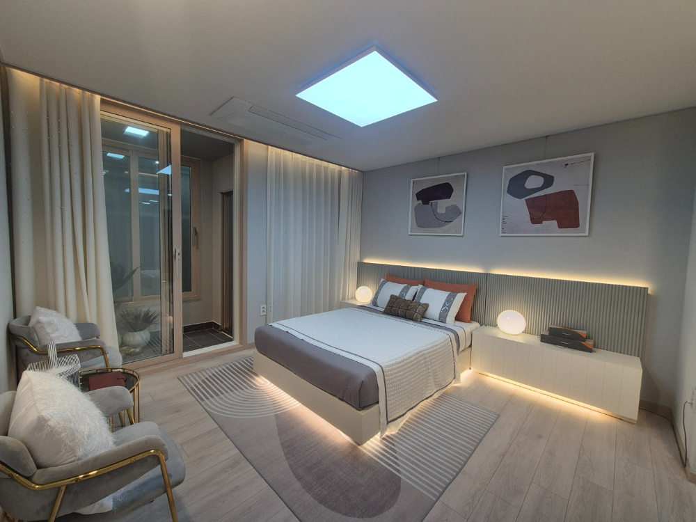 공간마다 포인트 벽면 설계, 조명 디자인, 수납 가구 선택 등이 고급스러우면서 실용적으로 설계되어 있어요. 요즘 트렌드에 맞게 실내 인테리어도 미니멀하면서 세련되게 구성돼 있어서 특별한 인테리어 비용 없이도 입주가 가능하다는 것도 장점이에요.