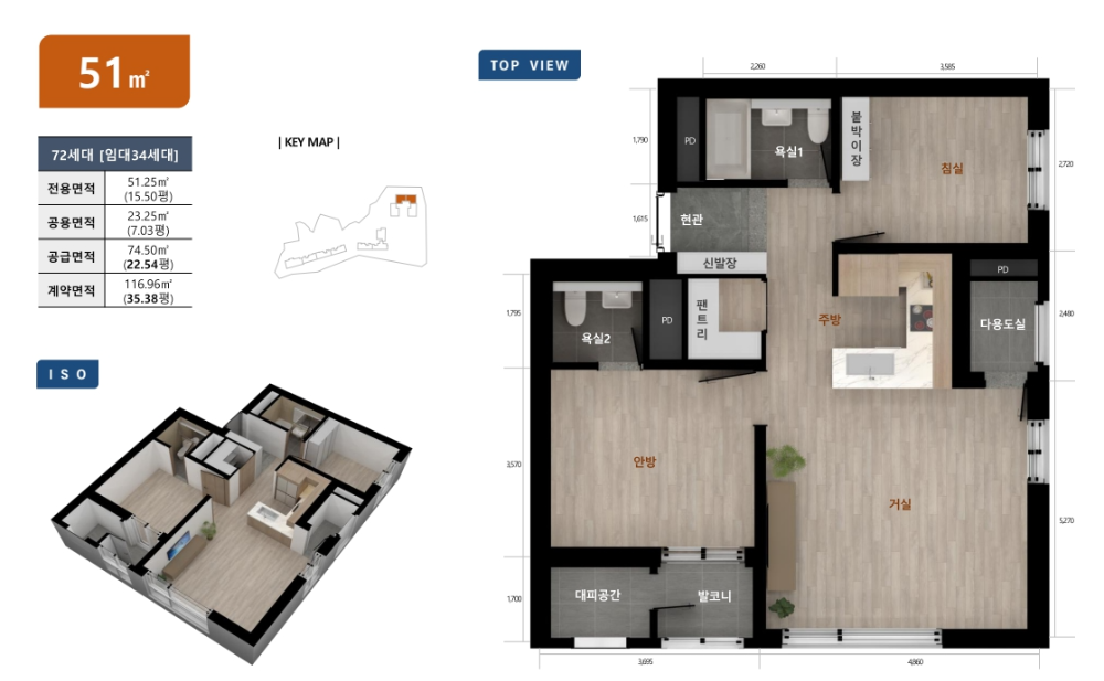 | 51㎡ | 방2 / 욕실1 | 신혼부부형, 팬트리 제공 |