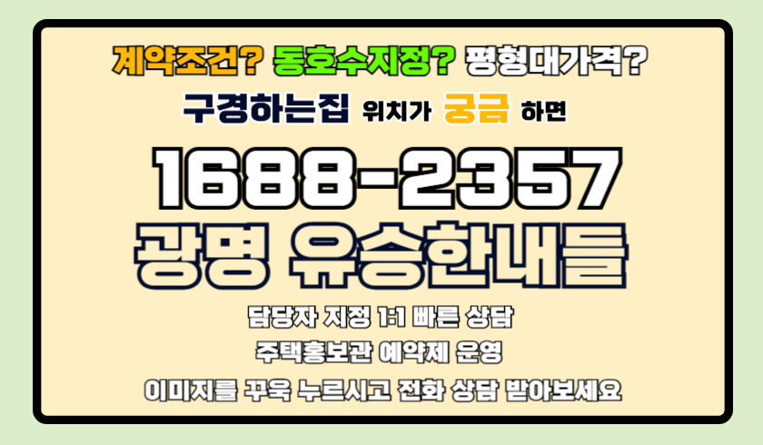 서울과 바로 맞닿아 있는 광명이라는 입지, 뛰어난 교통 접근성, 중대형 평형 위주의 실속 있는 설계까지 삼박자를 고루 갖추고 있어요. 특히 최근 청약 경쟁률과 계약률도 높은 수준을 보이며 곧 완판이 예상되는 분위기랍니다.