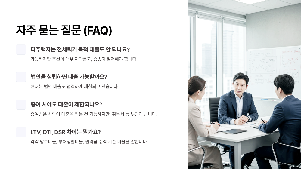 따라서 다주택자는 우회보다 전략적인 포트폴리오 조정이 중요해요. 매도 시점, 증여 타이밍, 보유 주택 조정 등을 통해 합법적이고 효율적인 대출과 자산운용이 필요해요. 🧾