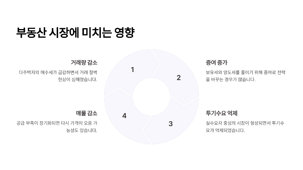 이런 규제의 결과로 가장 크게 나타난 변화는 바로 거래량 감소예요. 특히 다주택자의 매수세가 급감하면서 거래 절벽 현상이 심해졌죠.