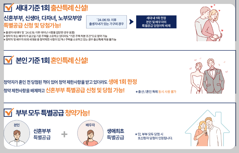 특히 예비신혼부부, 신생아 특별공급 등은 해당 증빙서류를 모집공고일 기준으로 준비해 두어야 불이익이 없어요.