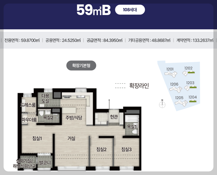 단지는 전 세대 발코니 확장형으로 시공되며, 실거주면적이 더 넓게 느껴져요. 또한 세대 내부는 구조별로 차별화된 설계가 적용돼 라이프스타일에 맞춰 선택할 수 있어요.