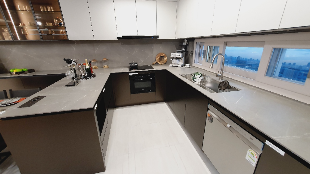 먼저 기본적으로 발코니 무상 확장이 제공되고요, 여기에 시스템 에어컨은 물론 빌트인 냉장고, 식기세척기, 전기쿡탑, 오븐, 에어드레서, 음식물 처리기까지 모두 무상으로 포함돼요. 가전 가격만 해도 3천만 원 이상 된다는 말이 있어요.