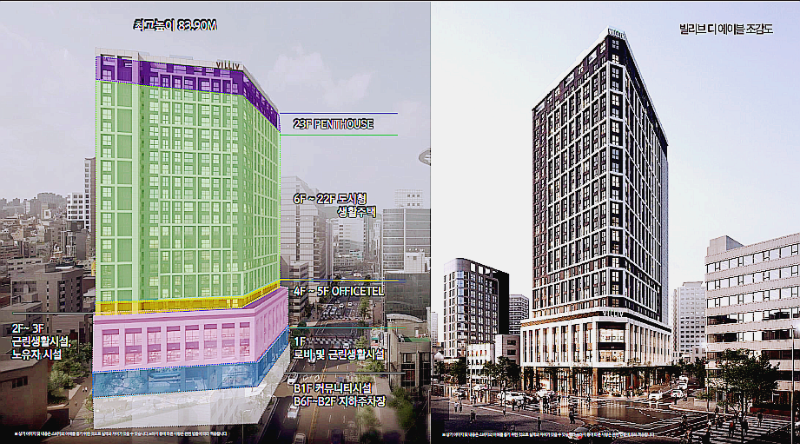 공급이 되고 지상최고층인 23층 펜트하우스로 건립이 됩니다.