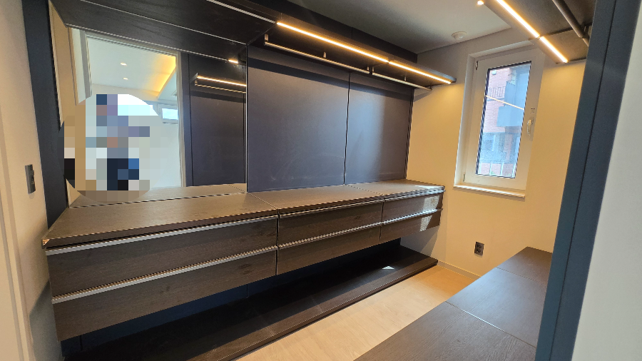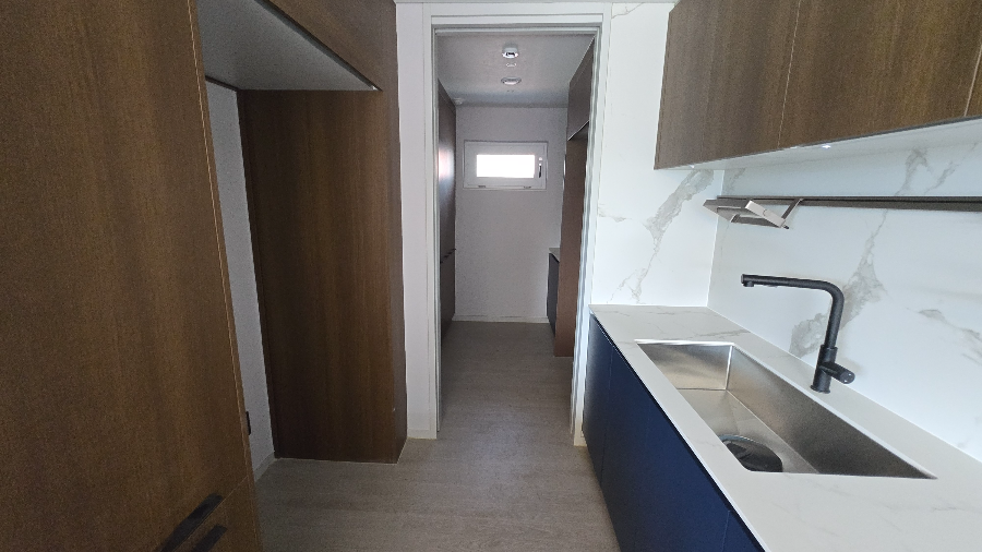 거실과 주방은 오픈형 구조로 탁 트인 시야감을 확보했고, 팬트리룸과 드레스룸, 현관 창고까지 설계돼서 수납 효율이 매우 높아요. 냉장고를 위한 별도 공간, 주방 동선 분리 설계 등 디테일한 배려도 인상 깊어요.