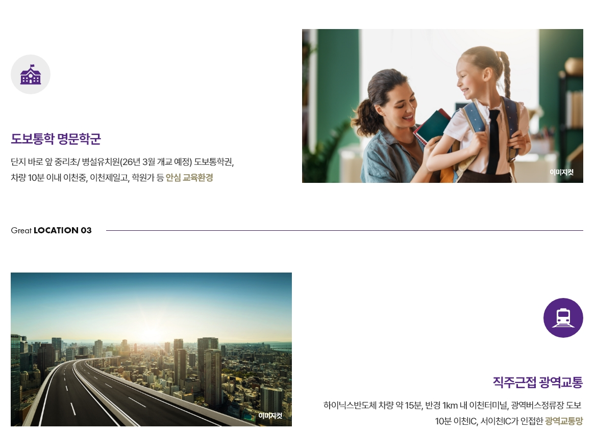 교육 여건도 좋아요. 단지 앞에 초등학교와 병설 유치원이 신설될 예정이라 아이 키우는 가정에 특히 적합하죠. 이마트, 시청, 도서관, 병원 등 다양한 생활 편의시설도 가까이 있어 입주 후 불편함 없이 바로 생활할 수 있어요.