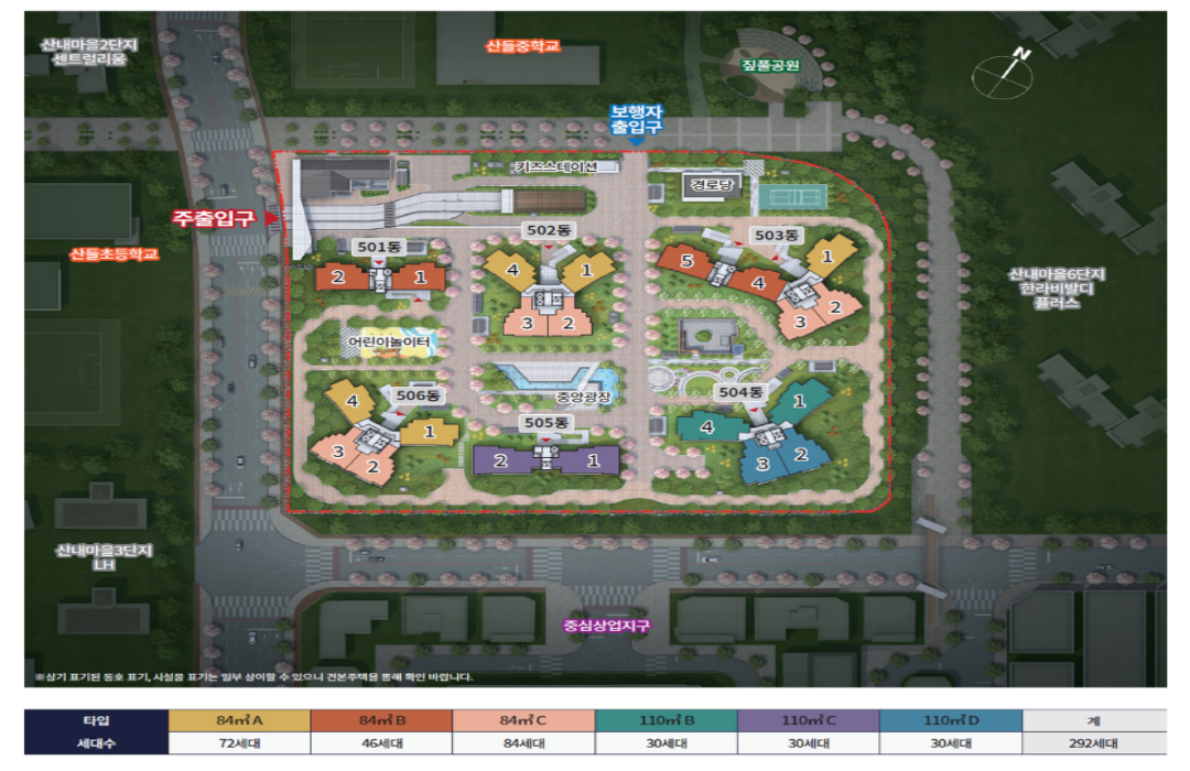 - 평형 : 전용면적 84㎡ ,110㎡ 중대형 평형대 구성