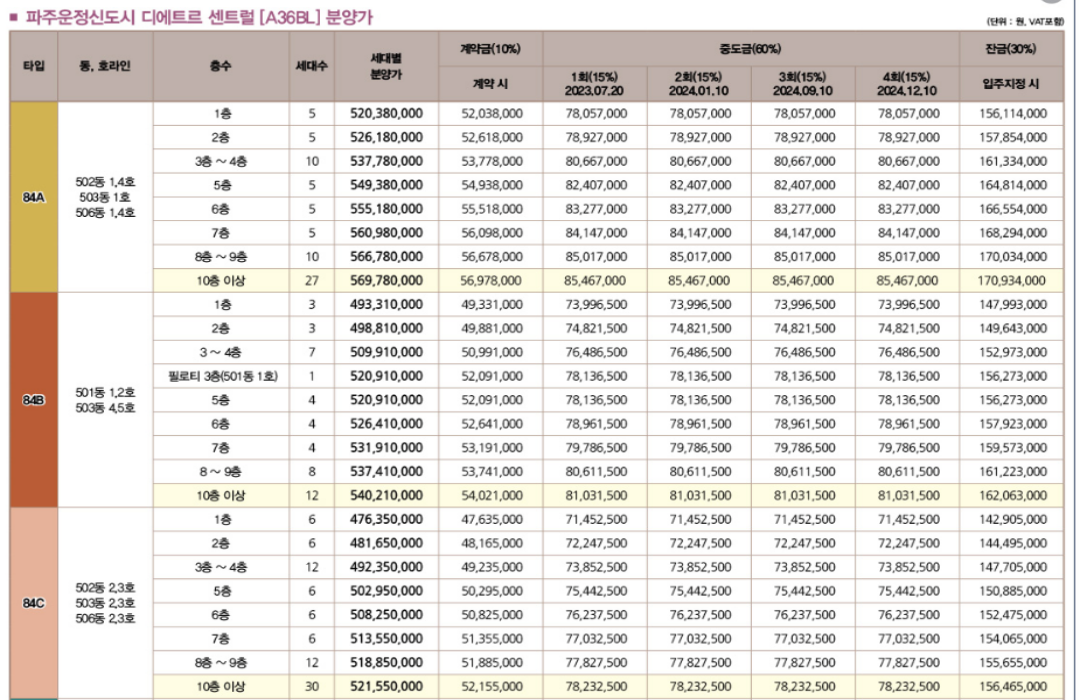 - 분양가 : 전용면적 84㎡C 타입 기준 약 4억7000만원대부터 (발코니 확장비 제외)