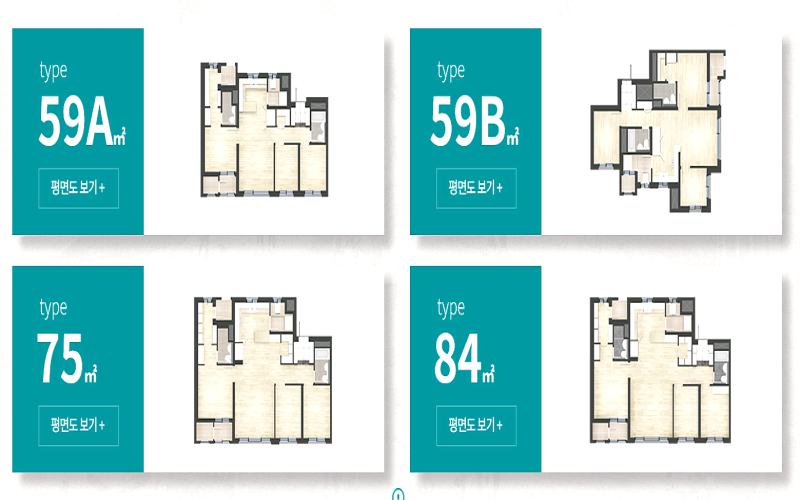 약 3,733세대로 구성된 대단지로 59형부터 84형까지 다양한 평형대가 준비되어 있습니다. 수요가 많은 중소형 평형으로 구성되어 있어 가족 구성원에 따라 적절한 선택이 가능합니다. 또한 대단지의 특성상 주변의 상권이나 인프라도 더욱 발전할 것으로 생각됩니다.
