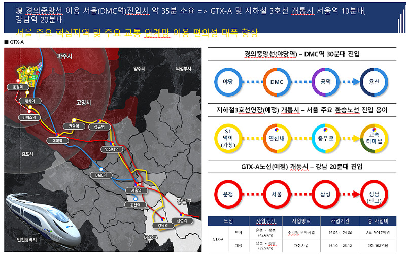 GTX-A노선과 제2자유로, 수도권 제2 순환도로등 교통 인프라가 잘 갖춰져 있습니다.