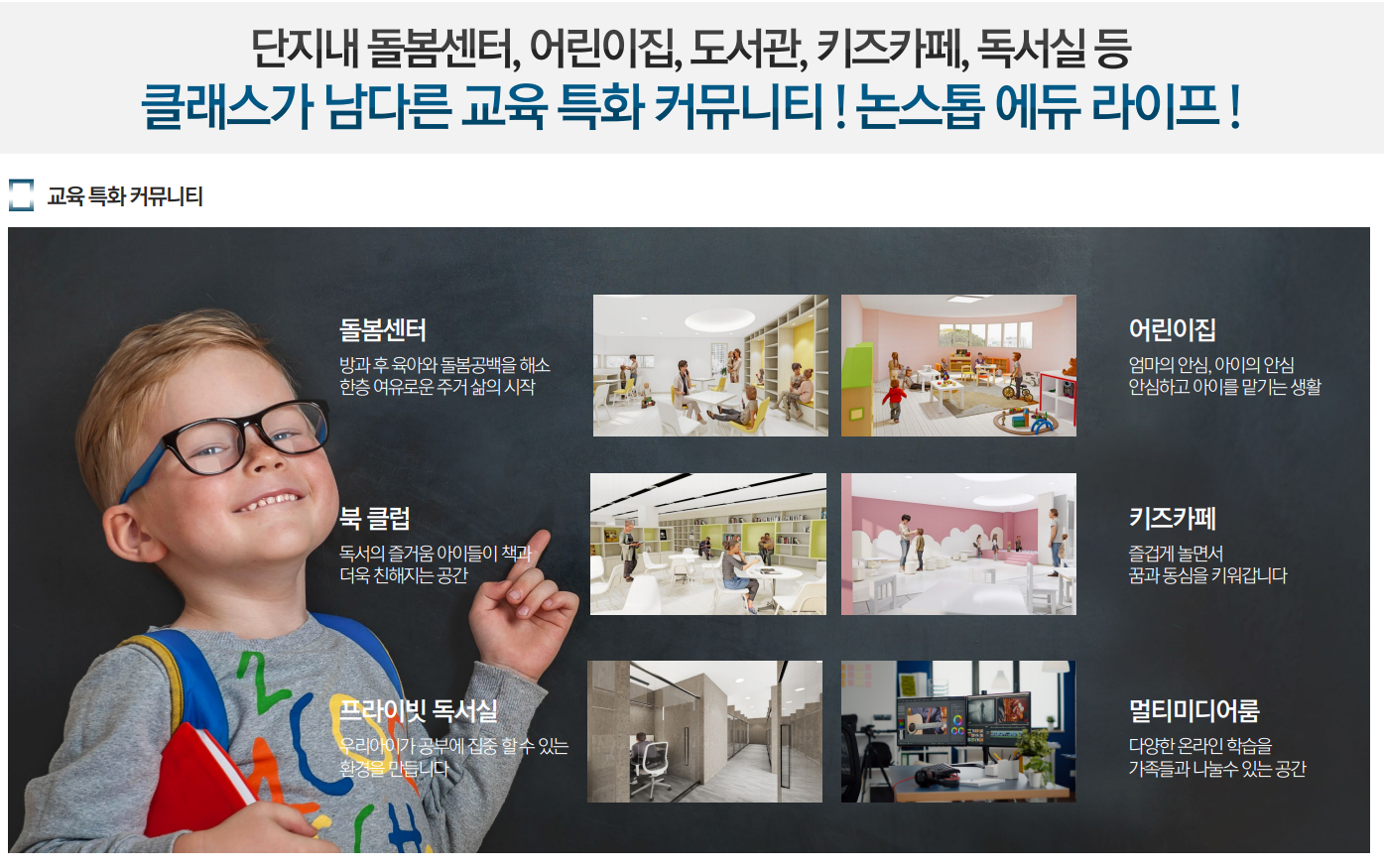 - 교육과 주거가 가까운 교쥬 근접형 아파트로 자녀의 꿈을 키워주고 싶은 분들께 추천합니다.