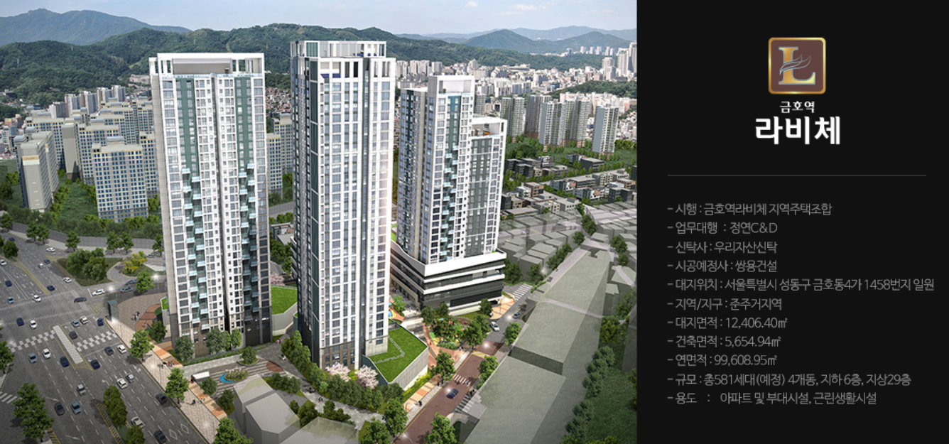 서울 성동구에 위치한 금호역 라비체 아파트에 대해 소개해 드리려고 합니다. 금호역 라비체는 쌍용건설이 건설하는 아파트로, 3호선 금호역 2번 출구와 직접 연결되는 초역세권의 입지를 자랑합니다.