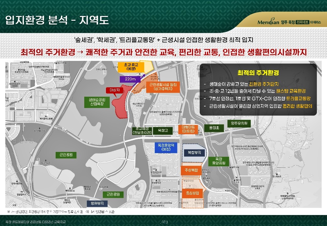 양주옥정 월드메르디앙 라피네트 더테라스 타운하우스는 1호선 회정역예정이 되어 있는데 덕계역과 덕정역 사이에 들어가게 되어 지하철 이용이 편리해집니다. 그리고 7호선인 옥정중앙역(예정)과도 가까운 거리에 들어설 예정이라 서울 강남과도 가까워 집니다. 이후에는 포천까지도 연결될 예정입니다. 이렇게 지하철 노선이 확충되면 지역의 가치가 상승하게 됩니다. 또한 GTX-C 노선도 가까운 덕정역에 들어올 예정입니다. GTX-C 노선은 양주와 수원을 연결하는 고속철도로, 착공과 개통시기에 따라 집값에 큰 영향을 줄 것으로 예상됩니다.