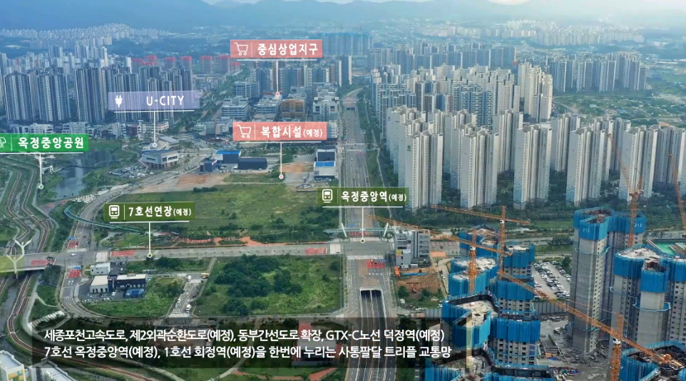 양주시 옥정신도시는 약 10만명의 인구 유입 계획으로 수도권 동북부에서는 최대 규모로 평가받고 있습니다. 실제로 전체 가구 수는 약 4만 세대로 인근 회천지구와 비교해도 2배에 달하고 있어 높은 기대감이 반영되고 있습니다. 양주옥정 월드메르디앙 라피네트 더테라스는 차량으로 5분 거리에 있는 1호선 덕정역을 이용하면 의정부, 도봉, 강북 등의 주요 업무지구로 쉽게 접근할 수 있습니다. 또한 양주 IC와 옥정 IC를 통해 세종포천고속도로에 바로 연결되어 서울 송파까지도 편리하게 이동할 수 있습니다. 더불어 교통 환경이 더욱 개선될 예정입니다. 서울 지하철 7호선 연장선 옥정중앙역(가칭) 예정과 수도권 1호선 회정역이 인근에 신설될 예정이며, GTX-C노선의 덕정역과 수도권 제2순환도로까지 개통예정이 되어 있어 양주시로 인구 유입이 지속적으로 되고 있습니다.