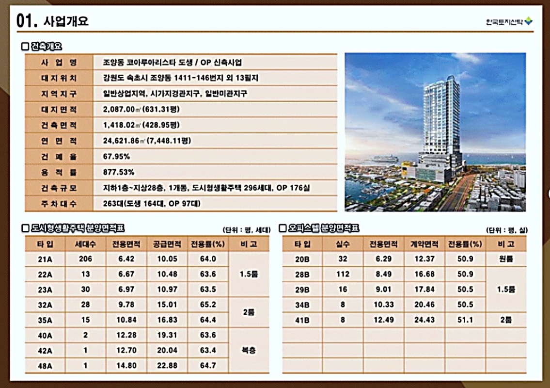 속초 코아루 아리스타는 강원도속초시 조양동에 위치한 도시형 생활주택과 오피스텔로 구성된 복합 주거 단지입니다. 이 지역은 동해바다, 청초호, 설악산의 멋진 조망을 자랑하며, 편리한 교통과 다양한 편의시설이 인접해 있어 세컨 하우스나 투자용으로 많은 관심을 받고 있습니다. 그럼 이제 속초 코아루 아리스타의 분양가격, 분양현황, 주변환경, 개발호재 등에 대해 자세히 알아보겠습니다.